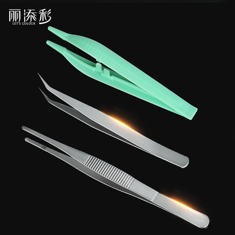 丽添彩不锈钢 塑料镊子尖头弯头产品示范工具小镊子套装热门设计联盟服务商