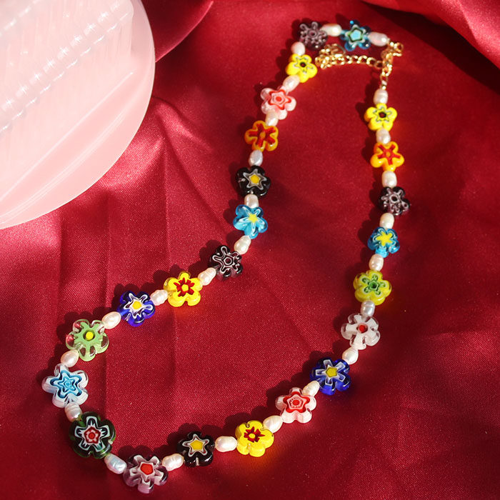 希腊设计师mayol时髦彩色花朵珍珠项链时髦女气质锁骨链欧洲小众热门设计联盟服务商