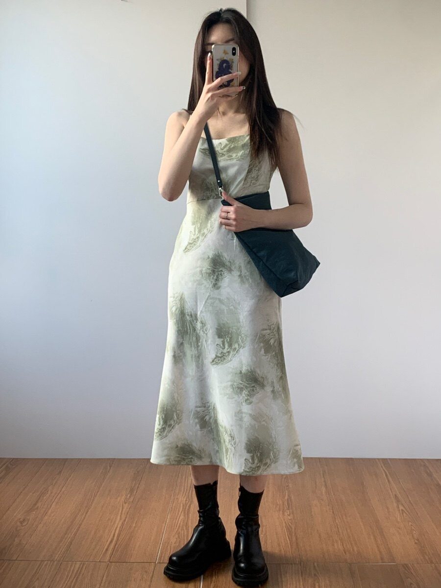NICETWOO 韩版设计感水墨印花吊带裙2021夏季新款复古高腰连衣裙热门设计联盟服务商