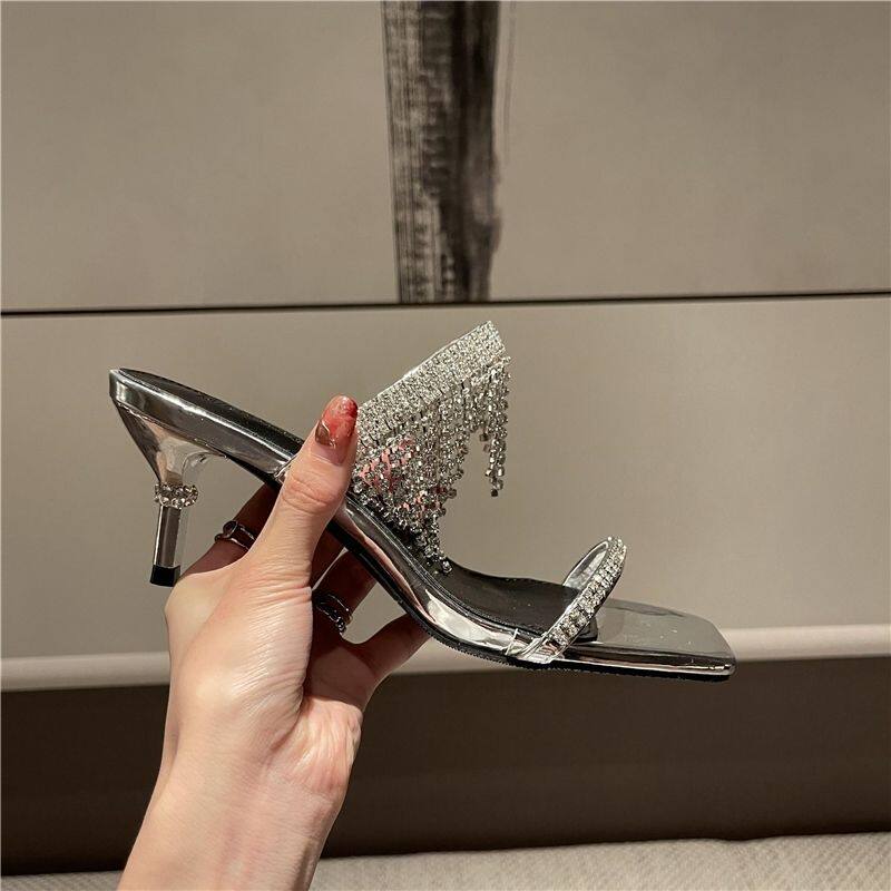 超闪!原创设计水钻流苏高跟鞋2021年夏季新款性感细跟凉拖女外穿热门设计联盟服务商