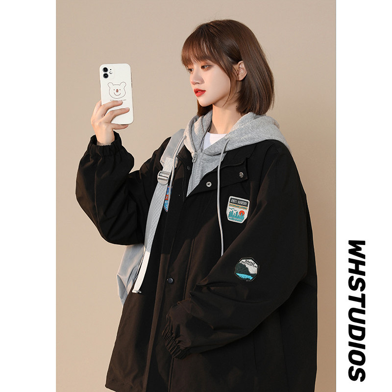 森马外套女春秋2022新款盐系夹克oversize设计感小众假两件棒球服热门设计联盟服务商