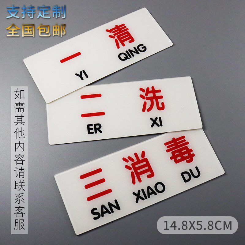 一清二洗三消餐厅卫生标准标识牌亚克力防水防污洗菜洗手分区标志热门设计联盟服务商